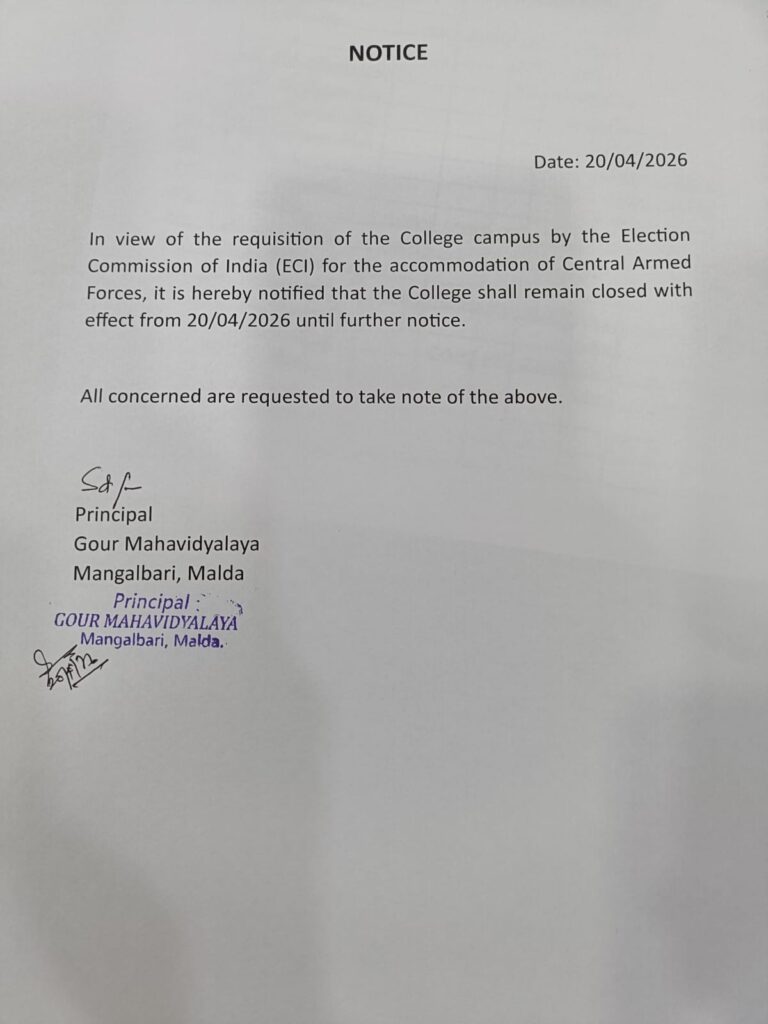 Notice for Election Commission of India (ECI) for the accommodation of Central Armed ForcesBy Gour accountent / April 20, 2026